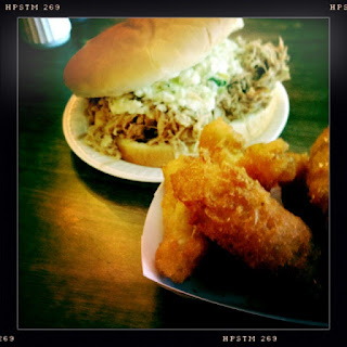 scoop an enormous dollop of chopped pork (with creamy cole slaw) onto a